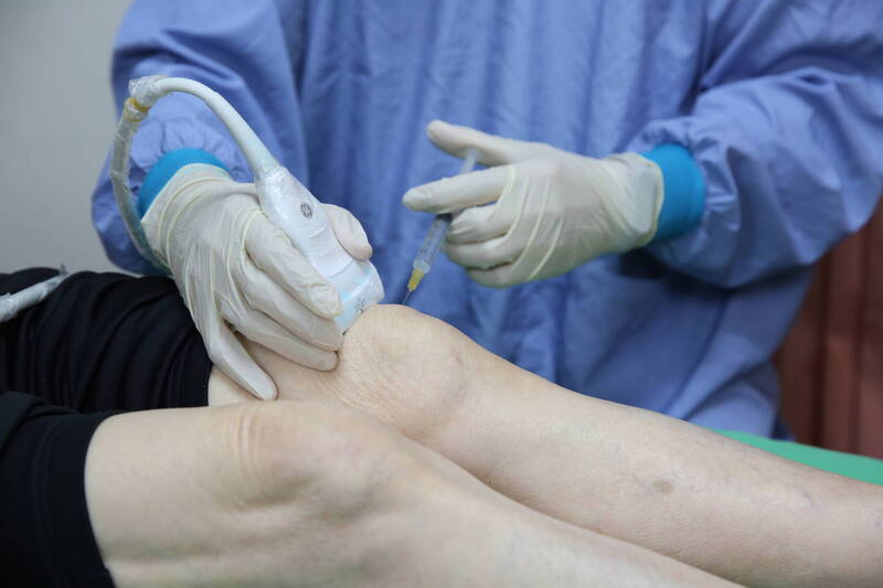 細胞研製中心將病人自體骨髓幹細胞培養出高品質且數量充足的細胞製劑後,由醫師精準注射回病人膝關節腔內,即可啟動修復。(花慈提供)